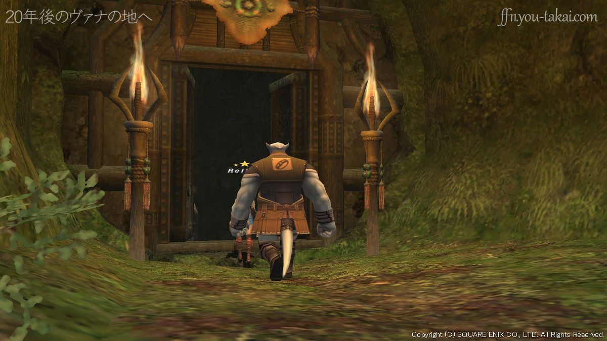 翡翠廟へ行き、Ornamental Doorを調べ、イベントを見ます。翡翠廟は、バフラウ段丘のHome Point #1から東へ進み、エリアチェンジした先です。翡翠廟へは、アトルガンミッション29番目「少女の傀儡」で一度訪れているはずですが……もしHome Pointを開通し忘れている場合は、以下の記事を参考に。
