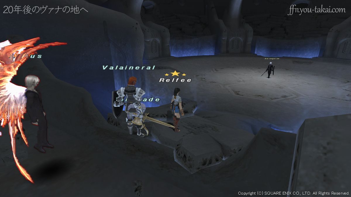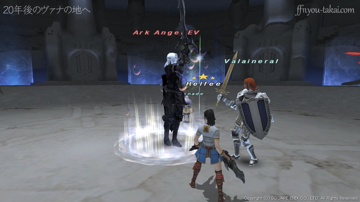 Ark Angel EVはエルヴァーンの見た目をしていて、白魔道士とナイトのハイブリッドジョブ。ドミニオンスラッシュの静寂とディスペル、アロガンズインカーネイトの大ダメージ、インターヴィーンの攻撃・命中大幅ダウンには、特に注意が必要です。