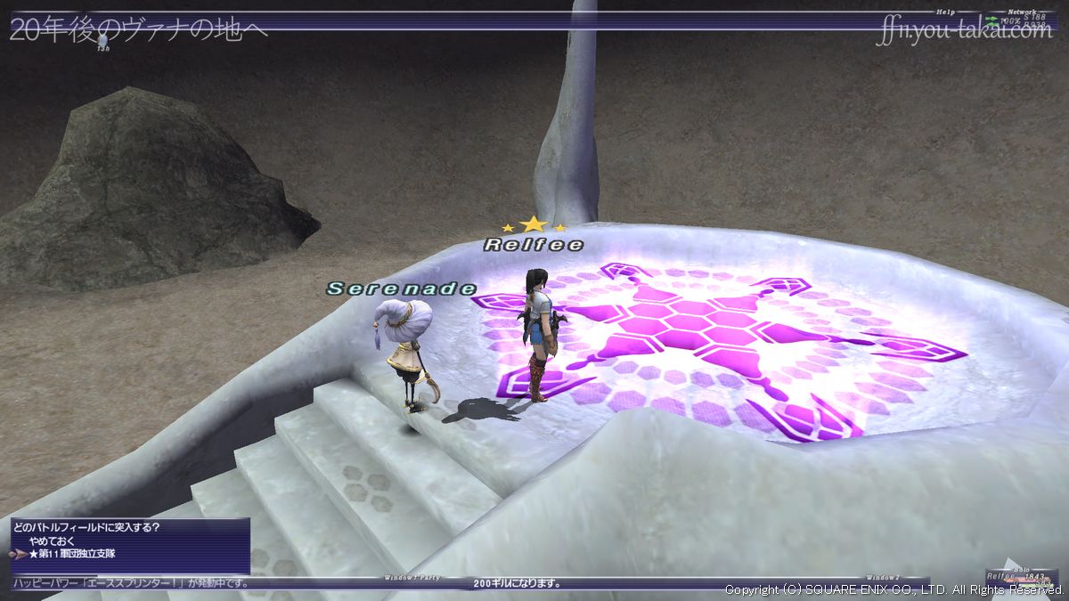宣託の間にあるShimmering Circleにコスミックオーブをトレードし、バトルフィールド「★第11軍団独立支隊」に突入します。流砂洞のHome Point #1が最寄りです。