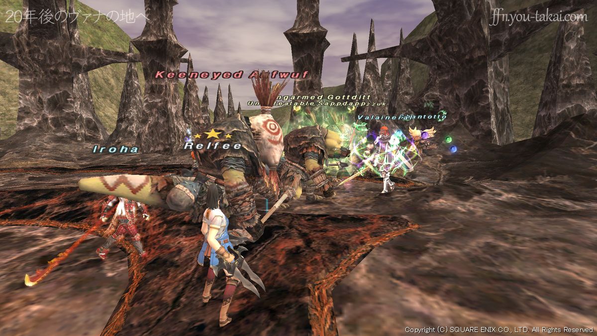 ホルレーの岩峰にあるBurning Circleにコスミックオーブをトレードし、バトルフィールド「★八つ裂き旅団」に突入します。ユグホトの岩屋のHome Point #1が最寄りです。