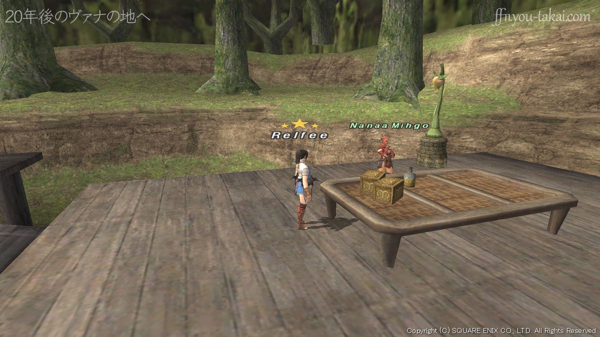 ウィンダス森の区J-3テンキー4あたりにいるNanaa Mihgoに話しかけます。